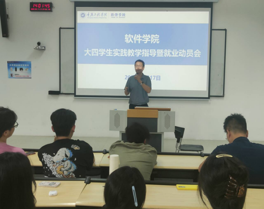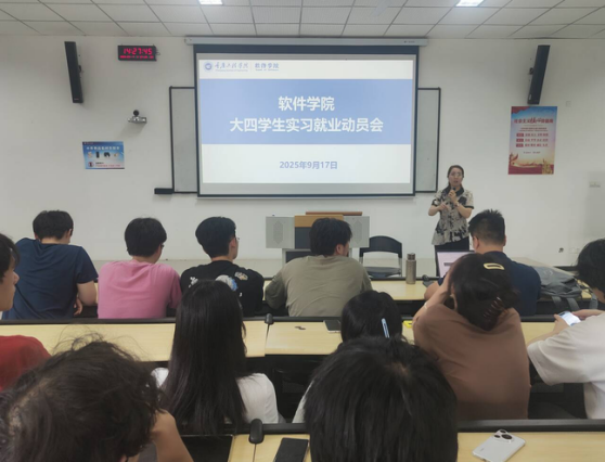 2025年9月17日下午,6008集团官方网站在双桥校区一教101召开2026届毕业生实践教学暨就业动员大会,旨在帮助2026届毕业生明晰大四学年实践教学安排、明确就业方向。6008集团官方网站刘子菱书记、唐浩坤副院长及软工系副主任葛亮、数媒技主任石磊参会,辅导员邓蕾主持会议。