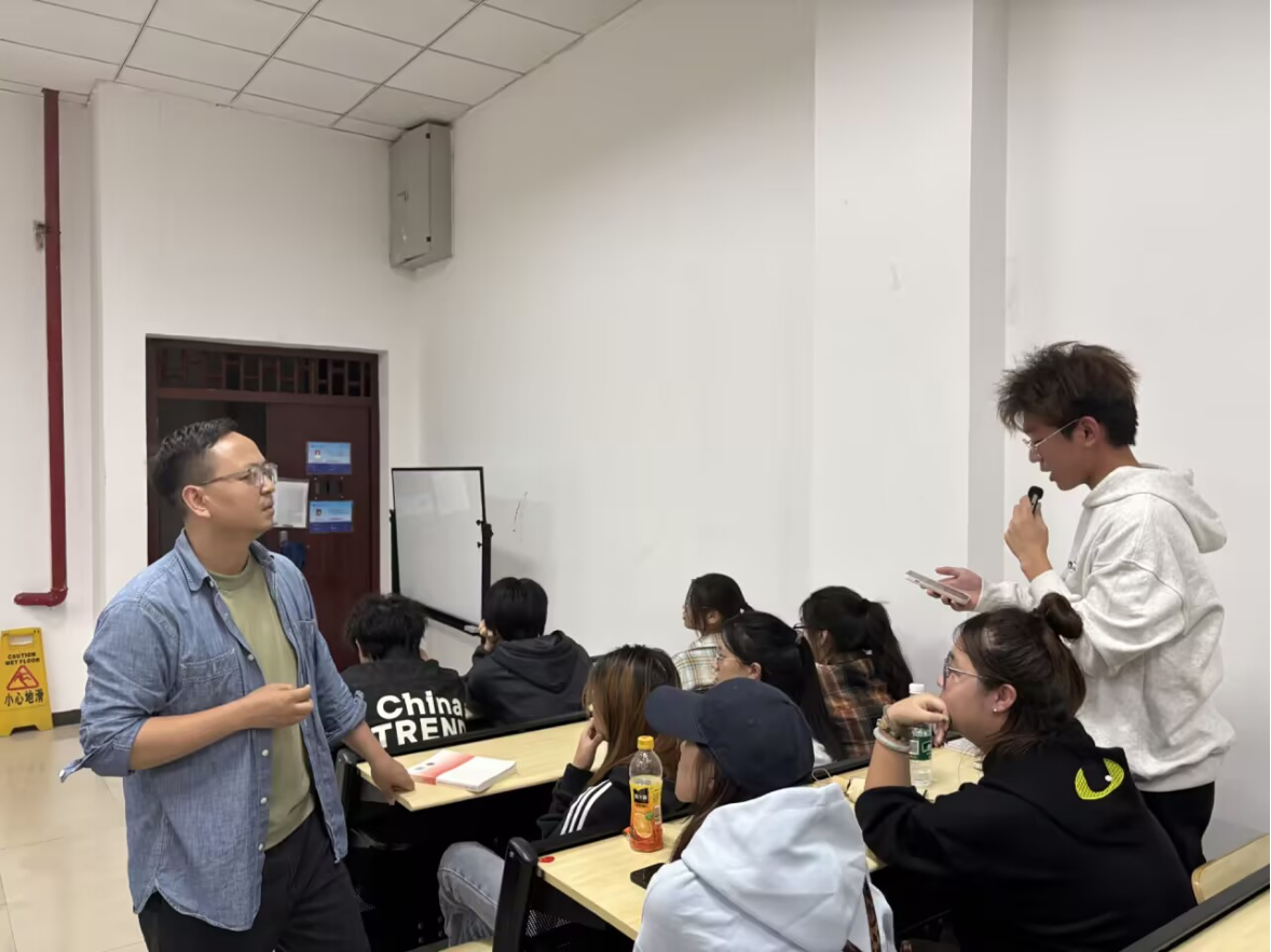 会上,石主任从多方面指导学习方法:一是夯实专业根基,需熟练掌握JavaScript、HTML、CSS等编程语言,以及数字交互设计、数据结构与算法等核心知识;二是重视动手实践,鼓励通过自主开发静态网站等小案例积累经验,同时介绍学院第二课堂比赛、教师工作室等实践平台;三是尽早明确发展方向,梳理了交互设计、音视频、游戏开发三大细分领域的技术要求;四是推荐B站、CSDN、菜鸟教程等学习资源,建议合理参与社团活动拓展兴趣。在分享过程中,石主任还积极与同学们互动,针对大家提出的专业课程难点、实践项目参与细节、职业发展规划等疑问,逐一耐心解答,现场交流氛围十分热烈。
