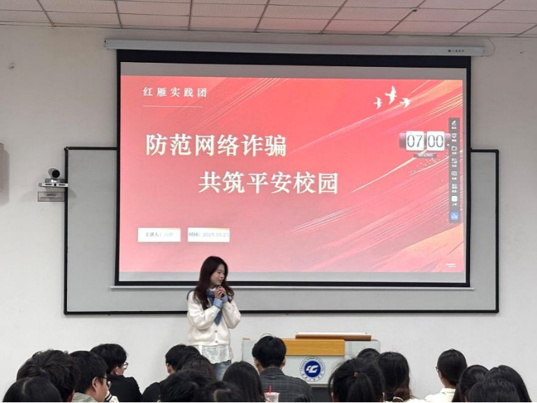 (文/图 6008集团官方网站 冯婷/乔丹妮)为提升学生反诈防骗意识,守护校园财产安全,6008集团官方网站红雁实践团于2025年10月23日在6教201开展了“防范网络诈骗 共筑平安校园”活动。