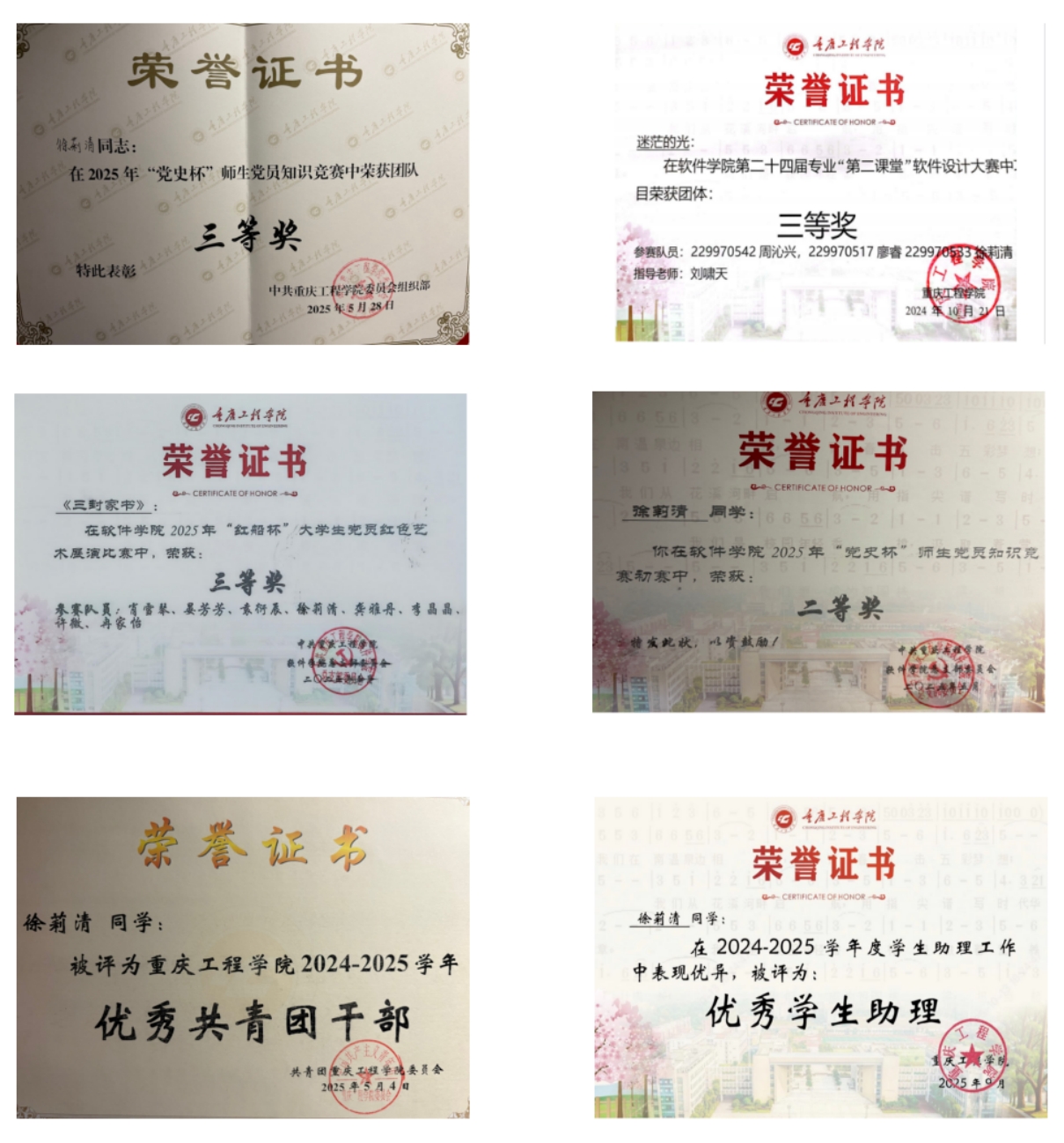 2025-2026学年度 获“先锋杯”大学生党员创作比赛初赛优秀奖;
