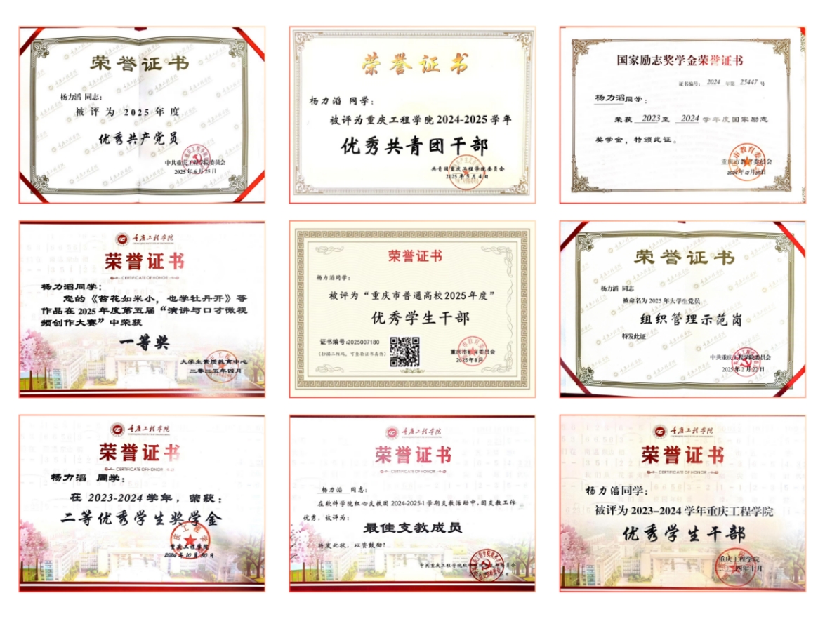 2025-2026学年度 获重庆市普通高校“优秀学生干部”荣誉称号;